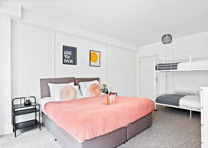 Profitez de votre séjour dans Spacious Family Apartment, Sleeps 6, Free Secure Parking, Near Beach Bornemouth de 50 m², situé au centre de Bornemouth, à 5 minutes à pied de la Église Saint-Pierre. Pour ceux qui voyagent en voiture, un parking public est disponible à proximité et vous pourrez également profiter du Wi-Fi .